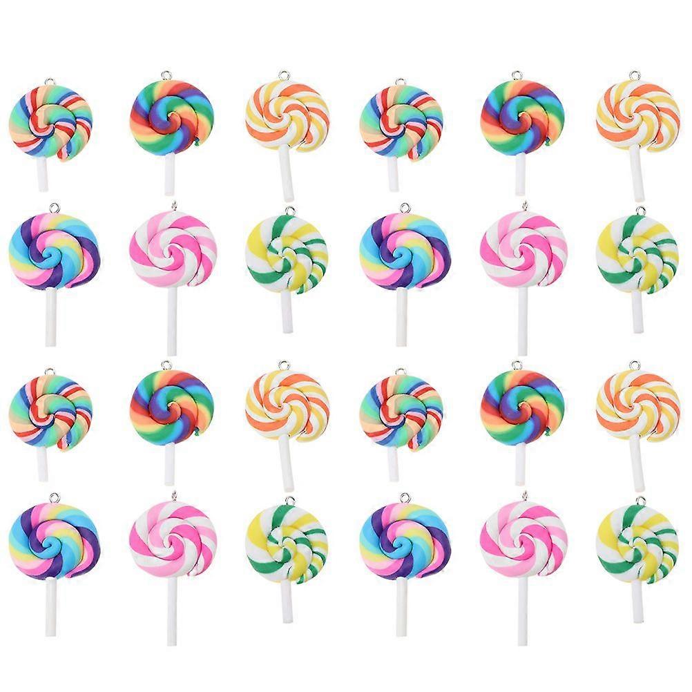 30Pcs Polymer Clay Lollipop Pendant Colorful Candy Charms for Earring Bracelet