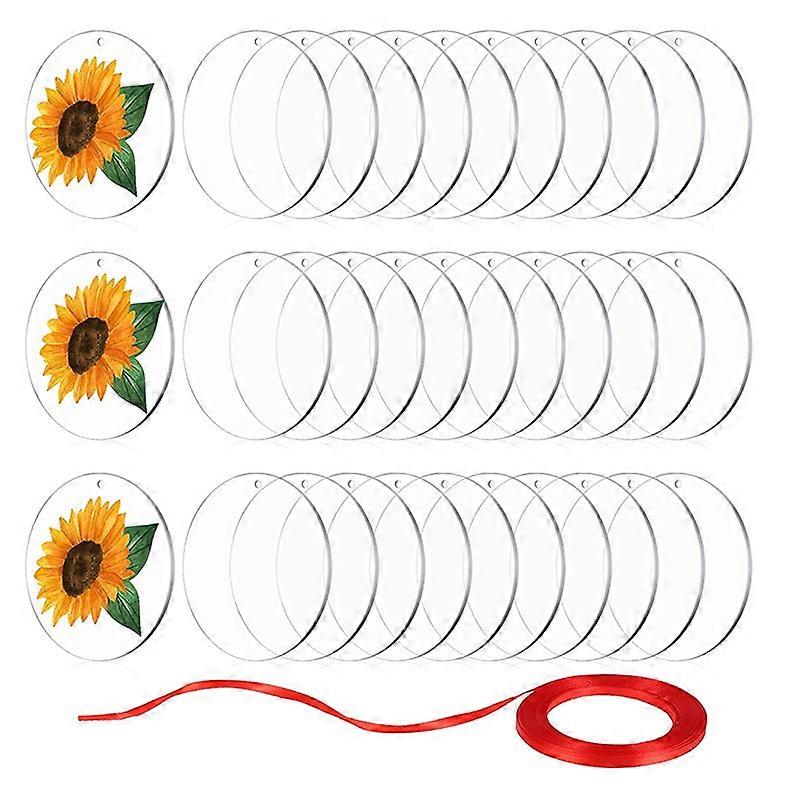 30Pcs Acrylic Blanks 2 Inch,Clear Circle Acrylic Sheet with Hole