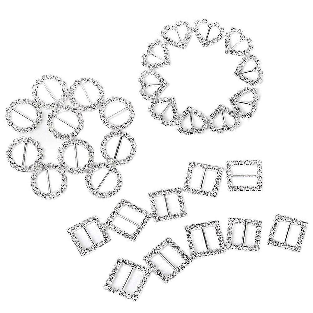 30pcs Heart / Round / Square Shape Ribbon Buckle Sliders for DIY Craft Wedding Invitation (Silver)