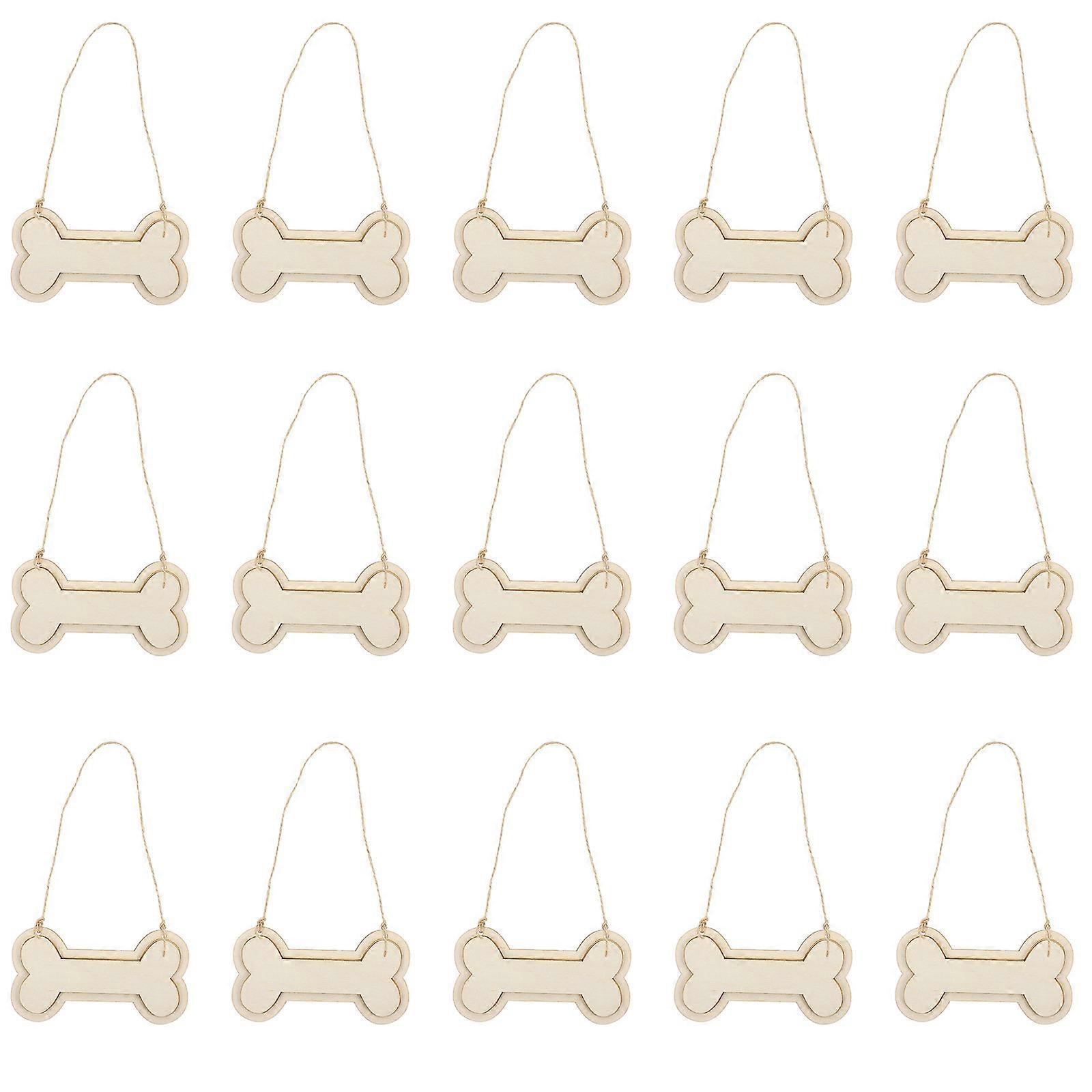 30PCS Dog Bone Wood Slice Plaque with Hemp Rope Unfinished Hanging Signs for DIY Crafts, Home & Festival Decorations