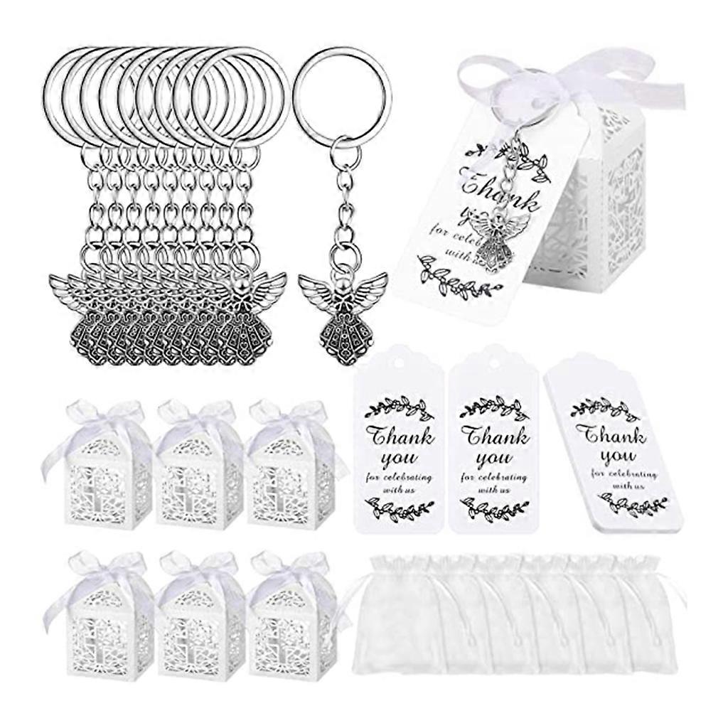 30Pcs/24Pcs Angel Keychain Pendant Favor Box Keychain Christening Gift Keyring with Thank You Kraft Pendant Bag for Kids