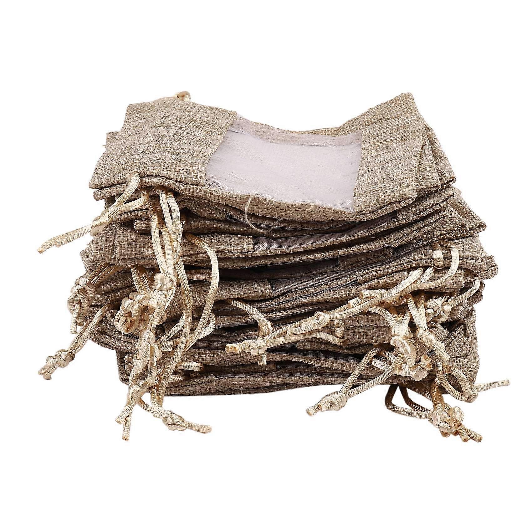 30Pcs Flax Organza Bags Burlap Drawstring Pouch Christmas Gifts Bag Wedding Party Bags for Coffee B