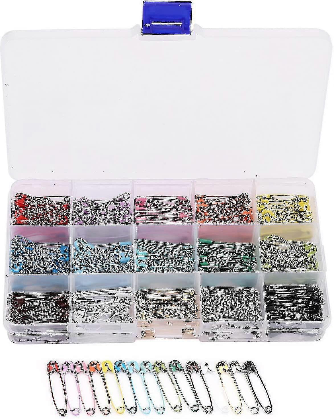 300 Pcs 32mm Colored Safety Pins With Box, 15 Colors Nickel Plated Steel Safety Pins For Art Craft, Sewing, Jewelry Making