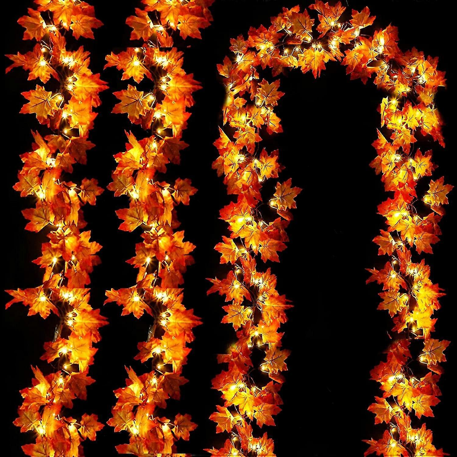 30ft Fall Garland Fall Decorations 60 Led Leaf Lights Patented Realistic Maple Leaves Battery Operated Autumn Decor Fall Thanksgiving Halloween