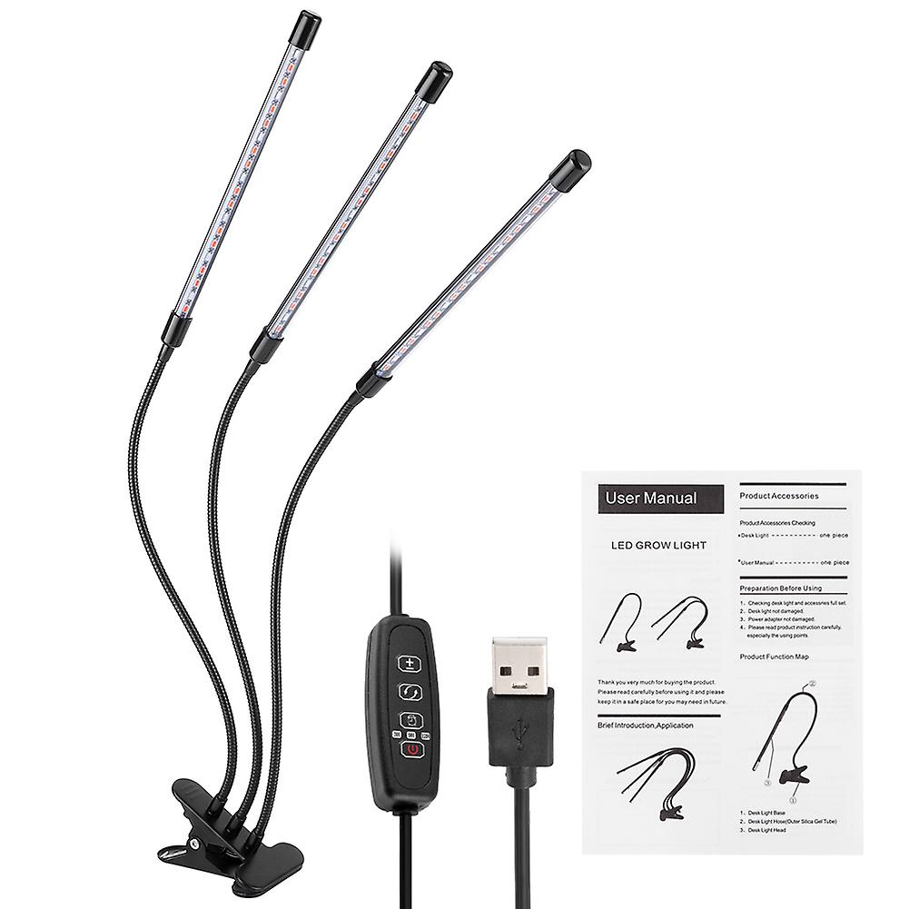 30W USB Flexible LED Grow Light 3 Tube Full Spectrum with Clip for Indoor Plants