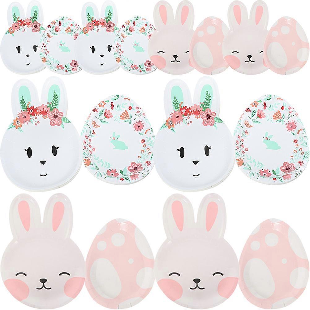 32pcs Easter Egg Shaped Plates Spring Festival Disposable Rabbit Plates Easter Party Supplies