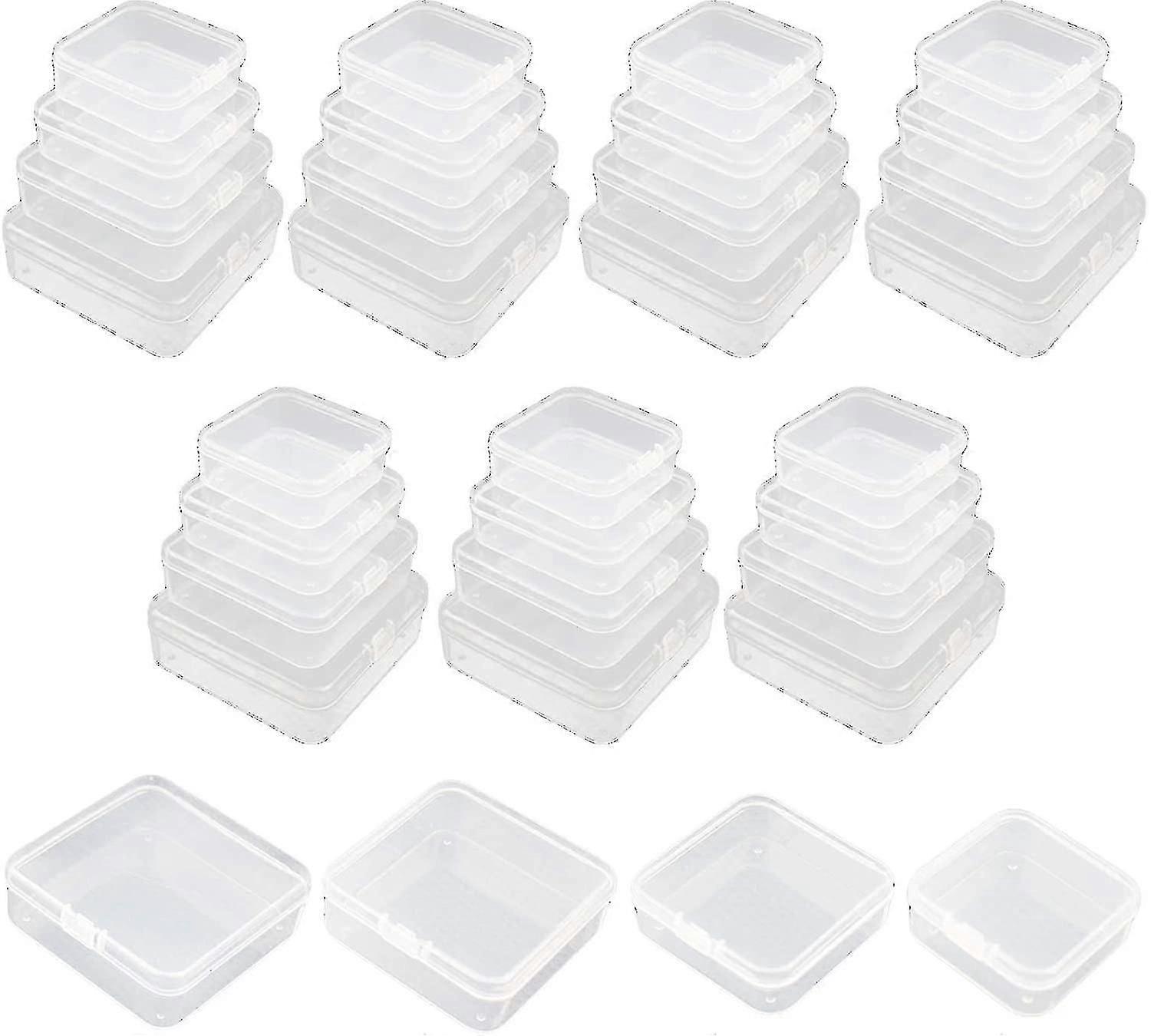 32 Pieces Square Empty Mini Storage Boxes Made Of Transparent Plastic With Lids