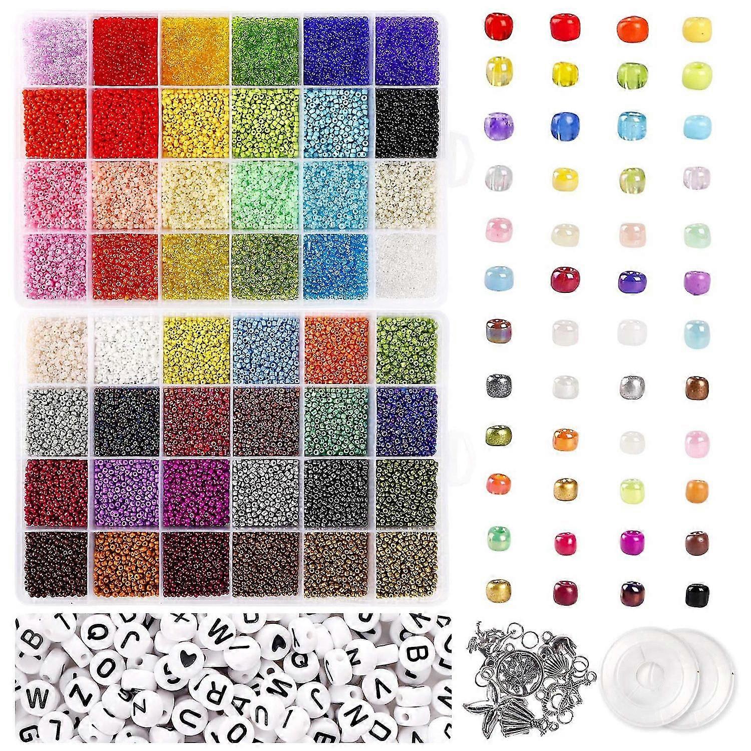 35000pcs Glass Seed Beads And 250pcs Alphabet Letter Beads 2mm Bracelet Beads