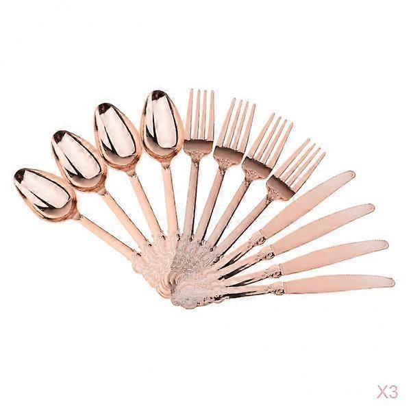36 Pieces Disposable Plastic Forks Spoons Knifes Party Decorations Rose Gold