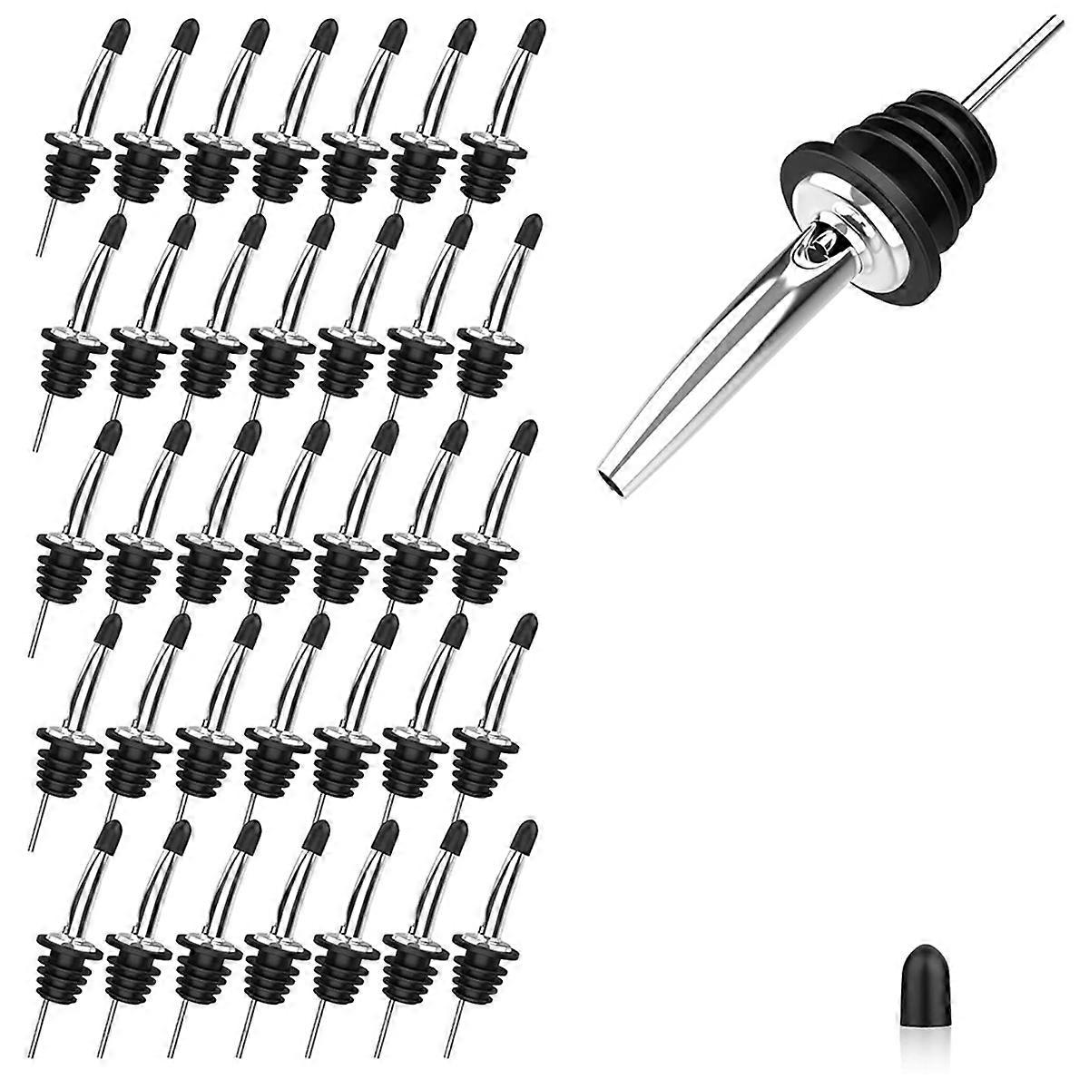 36pcs Stainless Steel Pour Spouts for Liquor Bottles, Oil, Vinegar, and Wine with Rubber Dust Caps