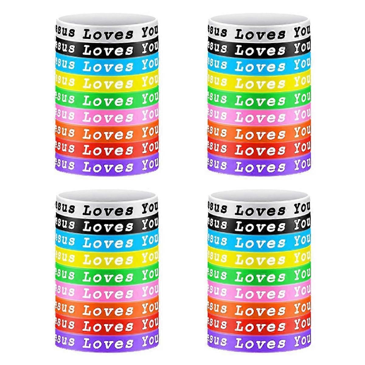 36Pcs Jesus Loves You Silicone Wristbands Colorful Rubber Bracelets Christian Silicone Wristbands A
