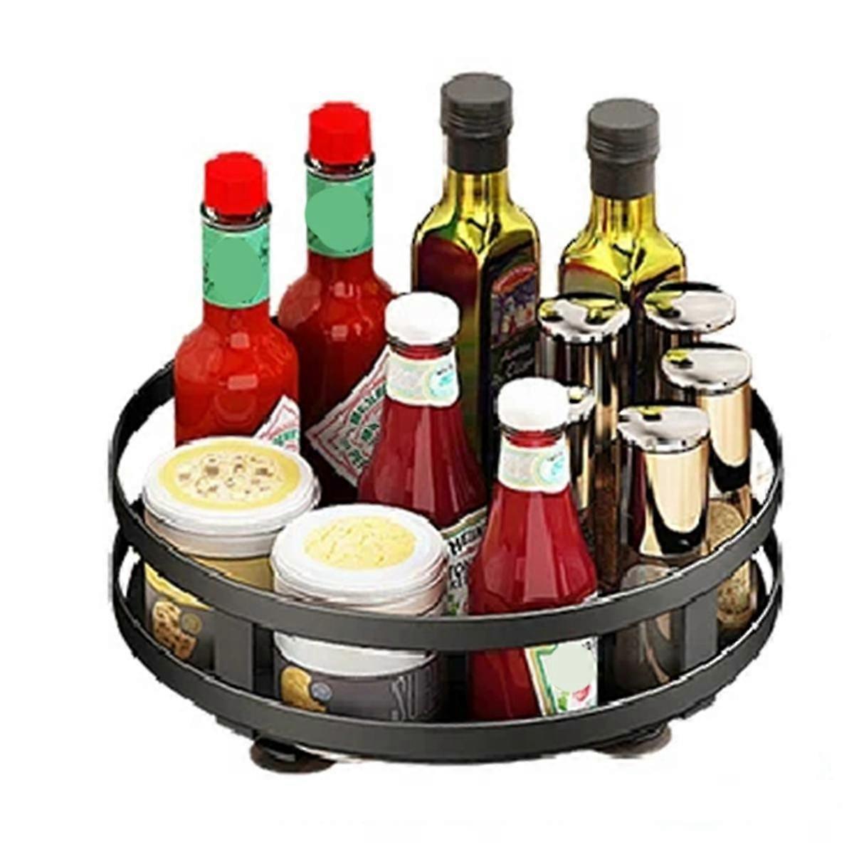 360-Degree Rotating Seasoning Rack Non-Slip Carbon Steel Storage Tray for Storage Tank Seasoning Kitchen Parts A