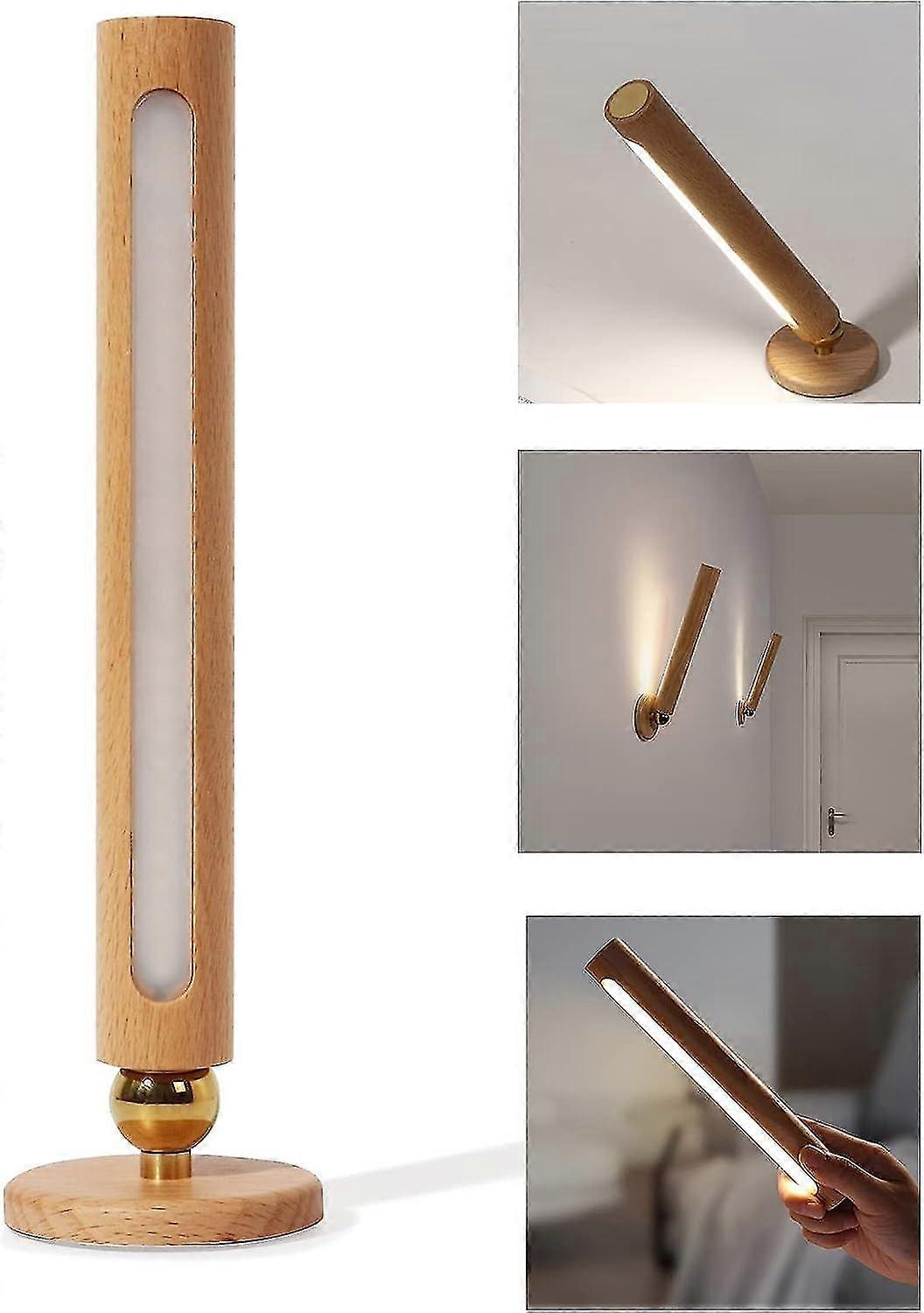 360 Rotatable Wooden Led Wall Lamp, Magnetic Detachable Stepless Dimmable Rechargeable Wall Light, Bedroom Night Light