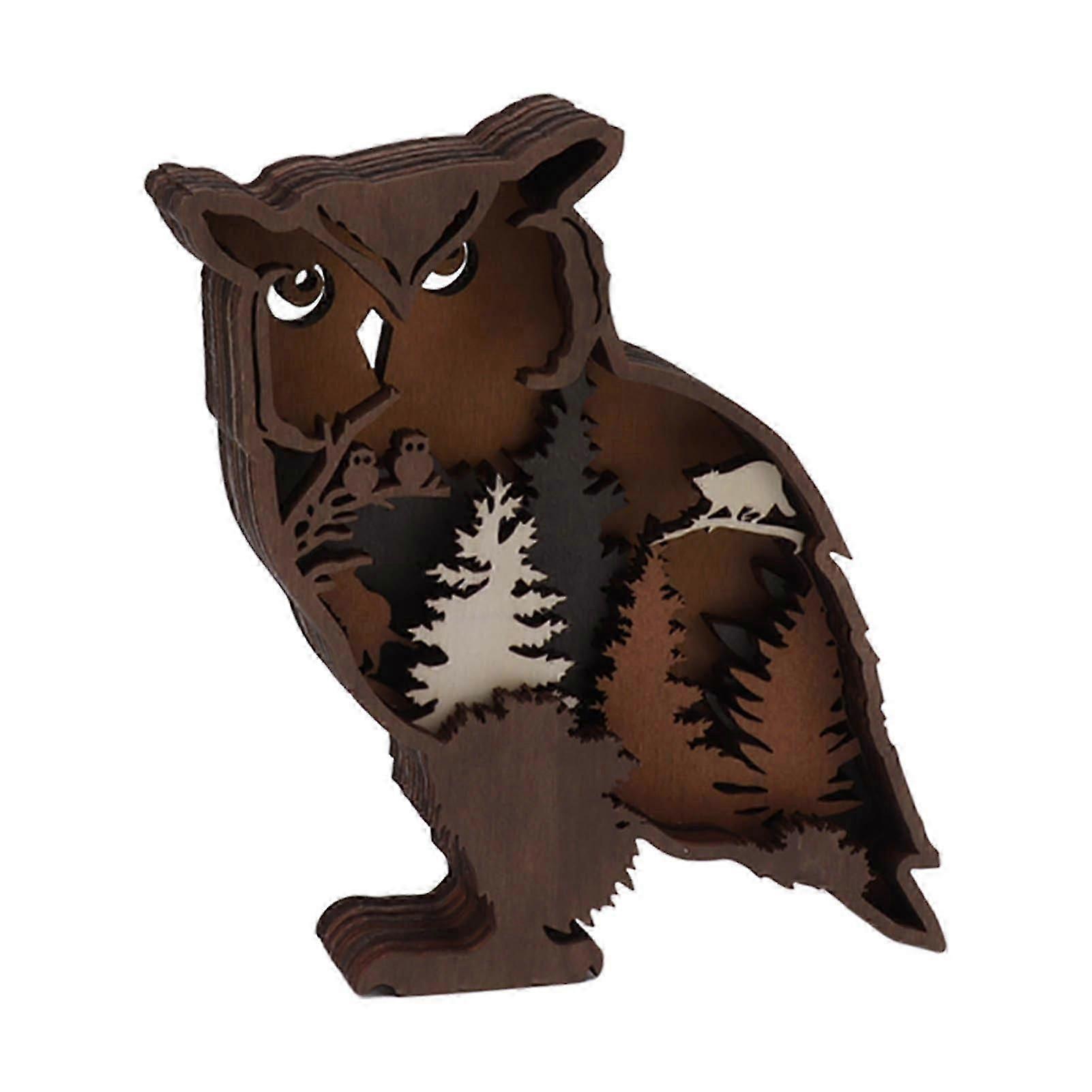 3D Wood Carving Lamp LED Owl Decor Handmade Wooden Animal Ornament Home Decor