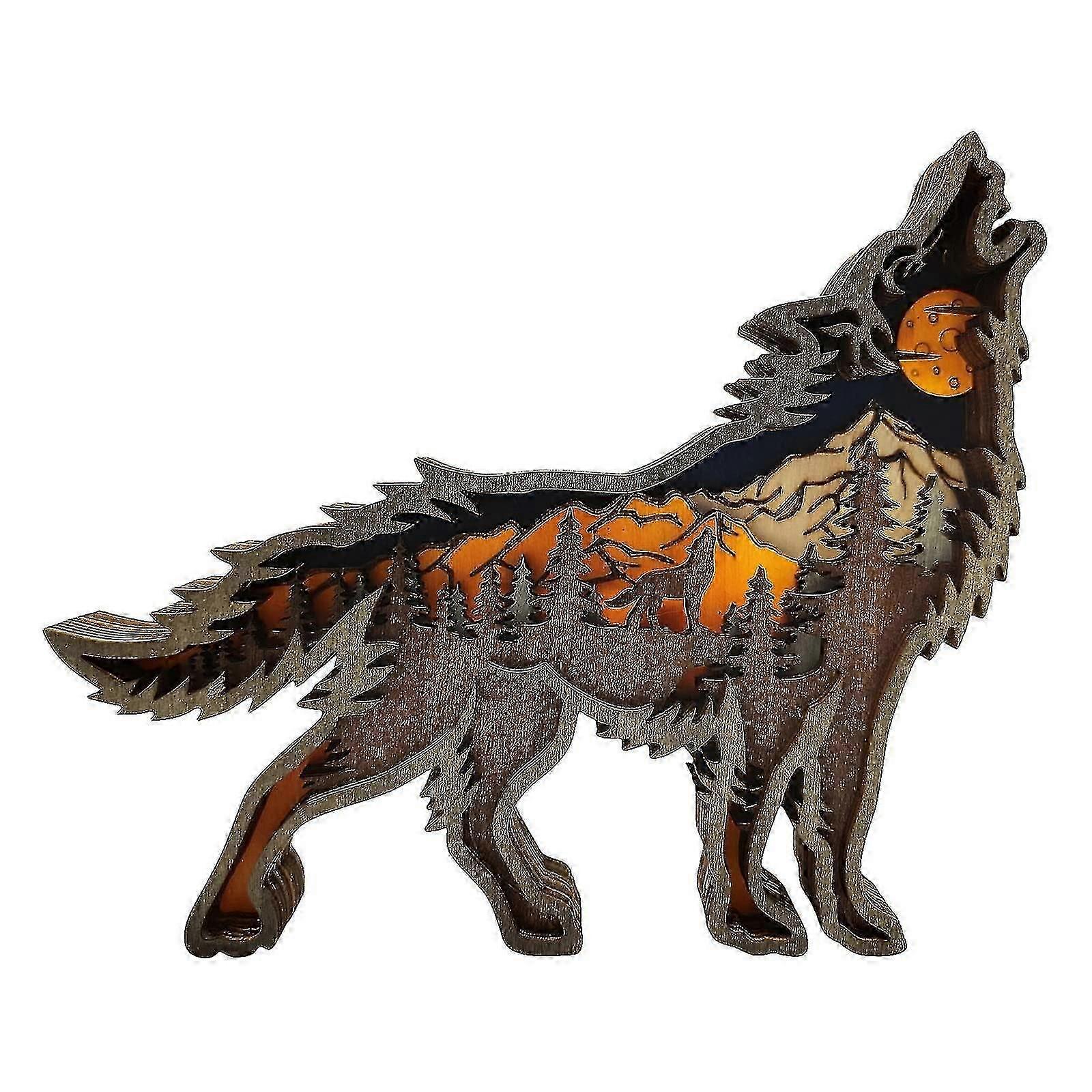 3d Forest Wolf Wood Crafts With Lights Retro Multilayer Wolf Wood Carving Animal Hand Painted Carving Handcraft
