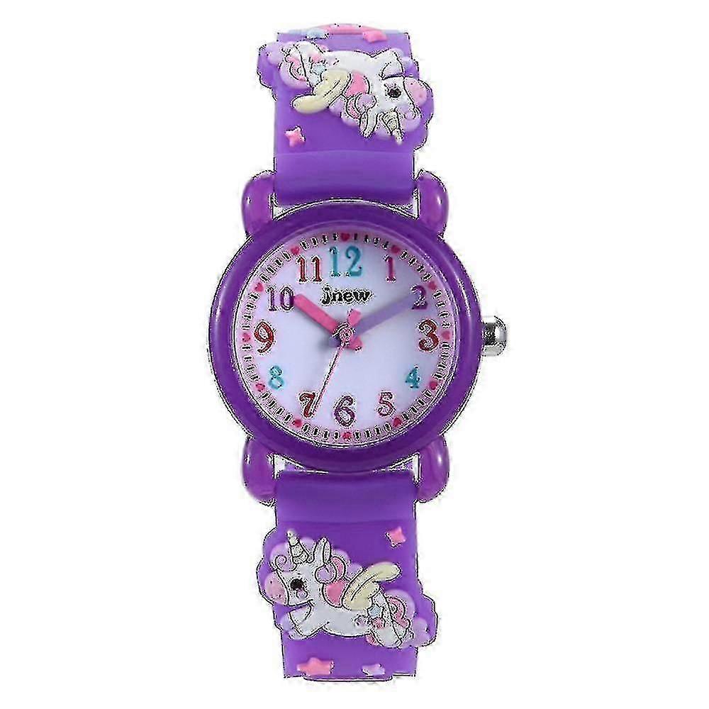 3d Cartoon Waterproof Kids Watches With Alarm - Unicorn Children's Cartoon Watch Best Toys Gifts For Girls Age 3-10( Color : Deep Purple )