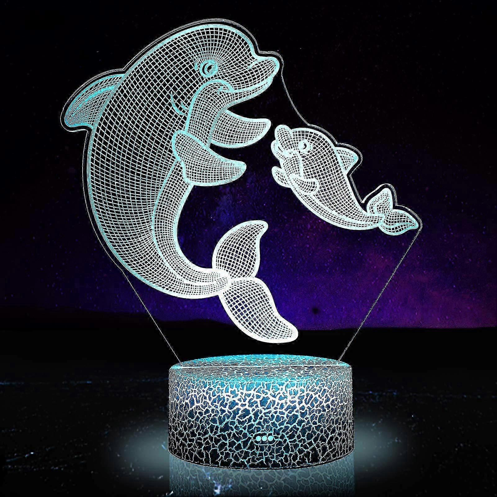 3d Dolphin Gifts Toys Decor Led Night Light With Remote Control, 16 Rgb Colours Bedside Lamp, Smart