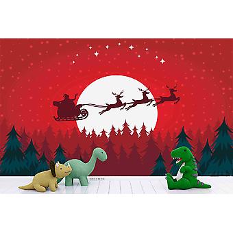 3D عيد الميلاد الرنة مزلقة غابة الصنوبر الأحمر خلفية جدار جدارية خلفية Gd 2098