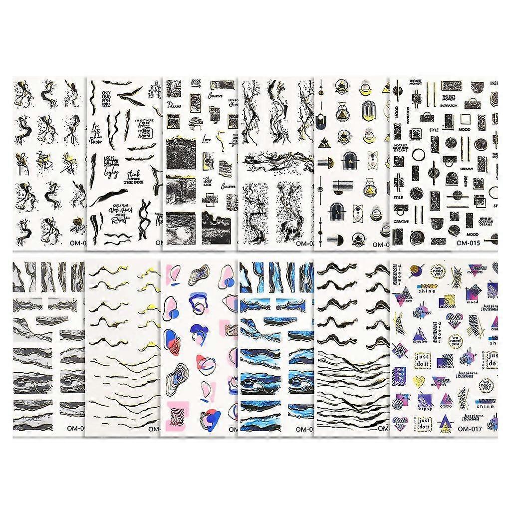 3D Nail Art Stickers Wave Lines Marble Geometry Flower Nail Art Sliders