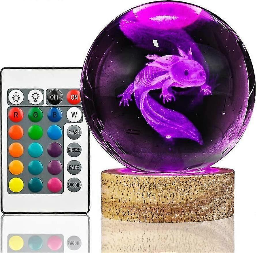 3d Axolotl Crystal Ball Night Light,3.15in K9 Crystal Ball Lamp With 16 Colors Change,wooden Base And Remote Control Decor Axolotl Gifts For Kids