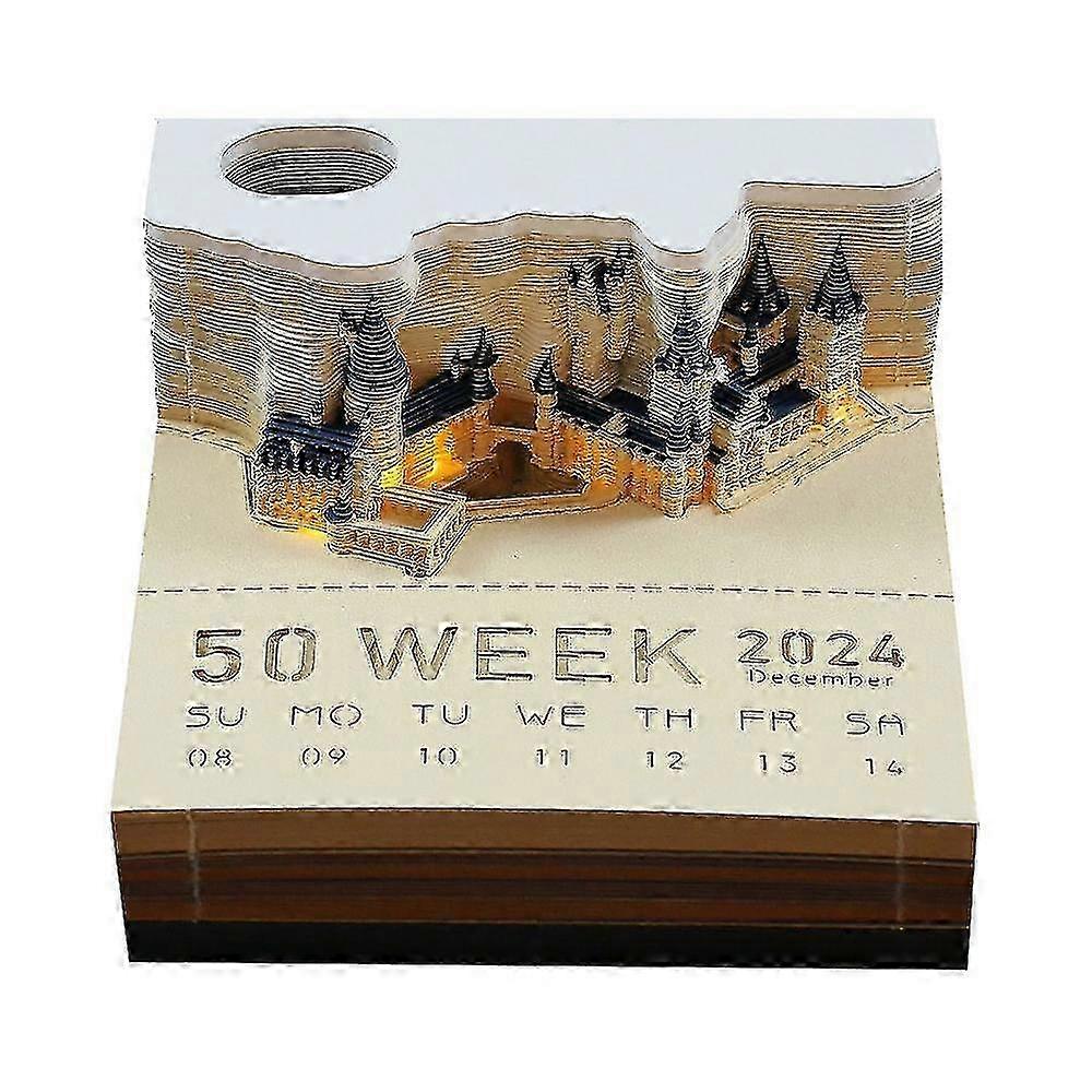 3D Castle Memo Pads, 2024 Desk Calendar Memo Pad Castle Weekly Notepad with light