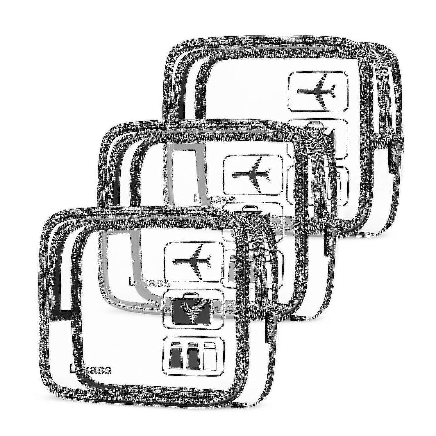 3pcs/pack Clear Toiletry Bag Tsa Approved Travel Carry On Airport Airline Compliant Bag Quart Sized 3-1-1 Kit Luggage Pouch (black)
