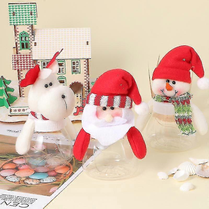 3pcs Christmas Plastic Candy Jar Empty Cookie Jars Doll Candy Box Container Party Decoration (santa, Snowman, Elk)