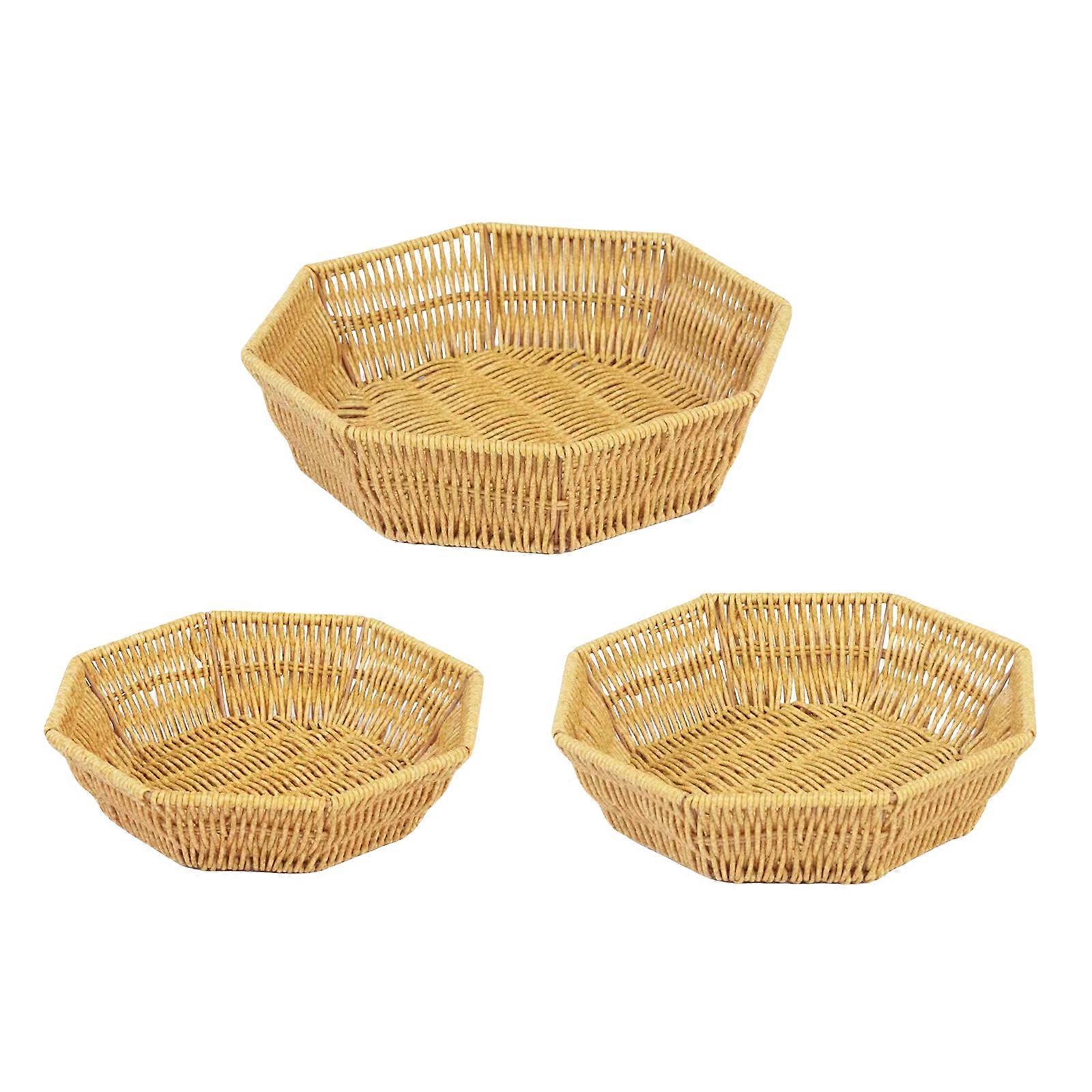 3pcs Elegant Octagonal Snacks Plate Imitation Rattan Woven Fruit Basket for Desktop Multipurpose Bread Serving Tray Multicolor
