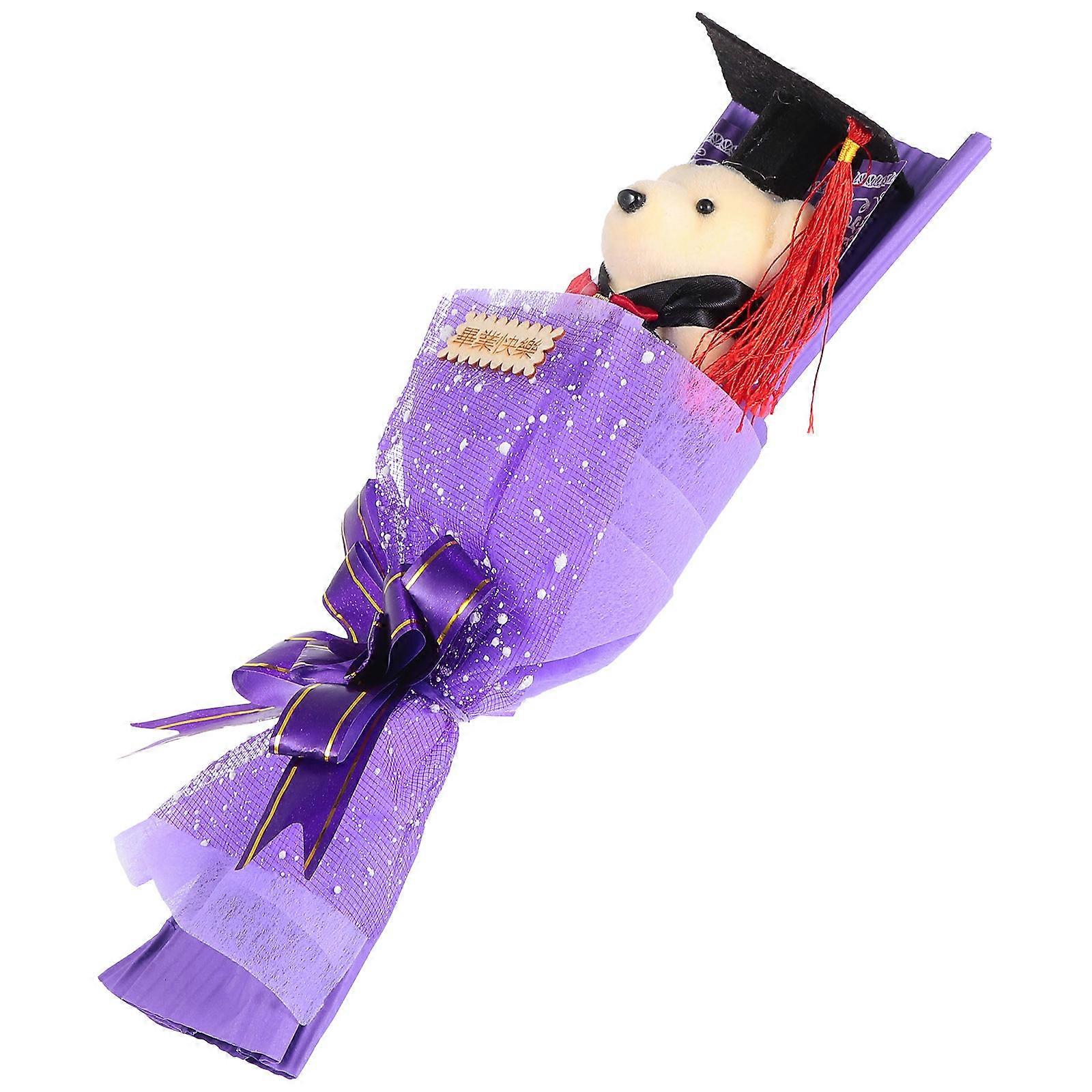 3Pcs Graduation Bear Bouquet Purple Multi-Purpose Decor Gift Set