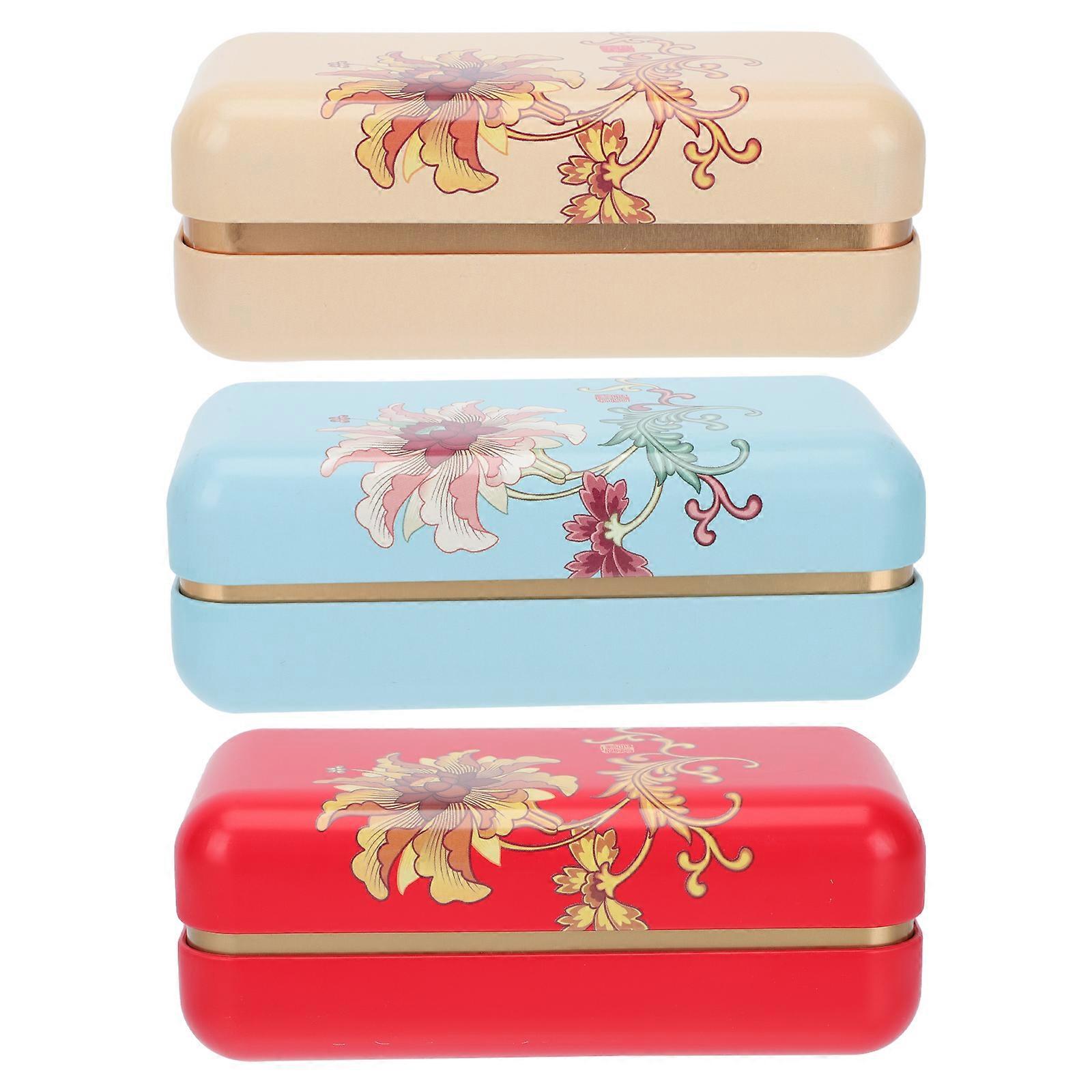 3Pcs Tea Storage Boxes Decorative Flower Pattern Tea Tins Practical Tea Cans
