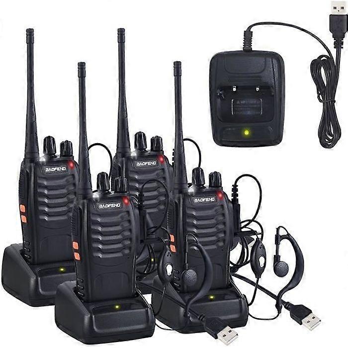 4 x Walkie Talkie Two Way Radio UHF 400-470MHz Walkie Talkie With Original Earphones Portable FM Transmitter 16 Channels - Black