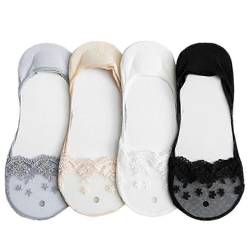 4 Pairs Summer Women Invisible Socks Cotton Shallow Mouth Socks Lace Boat Socks