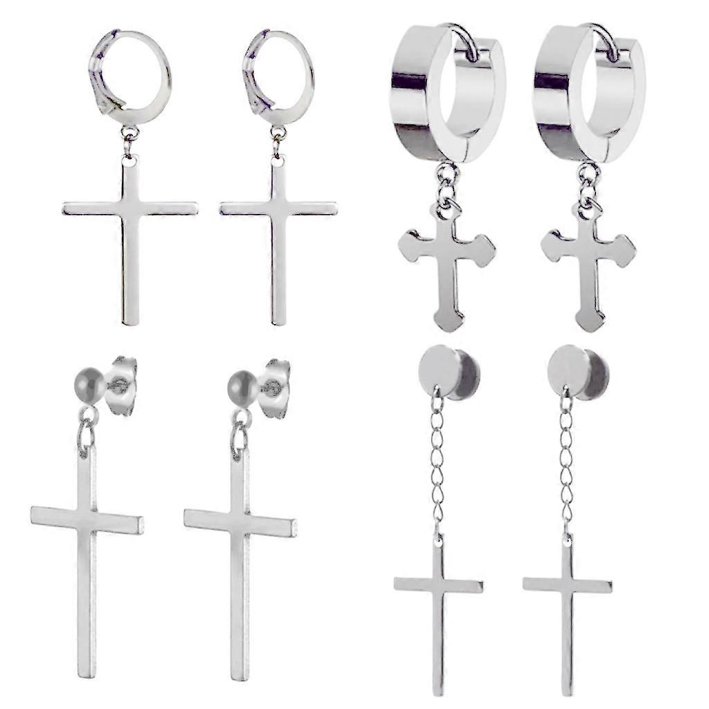 4 Pairs Piercing Stud Earrings for Men Women Halloween Cross Pendant Earring