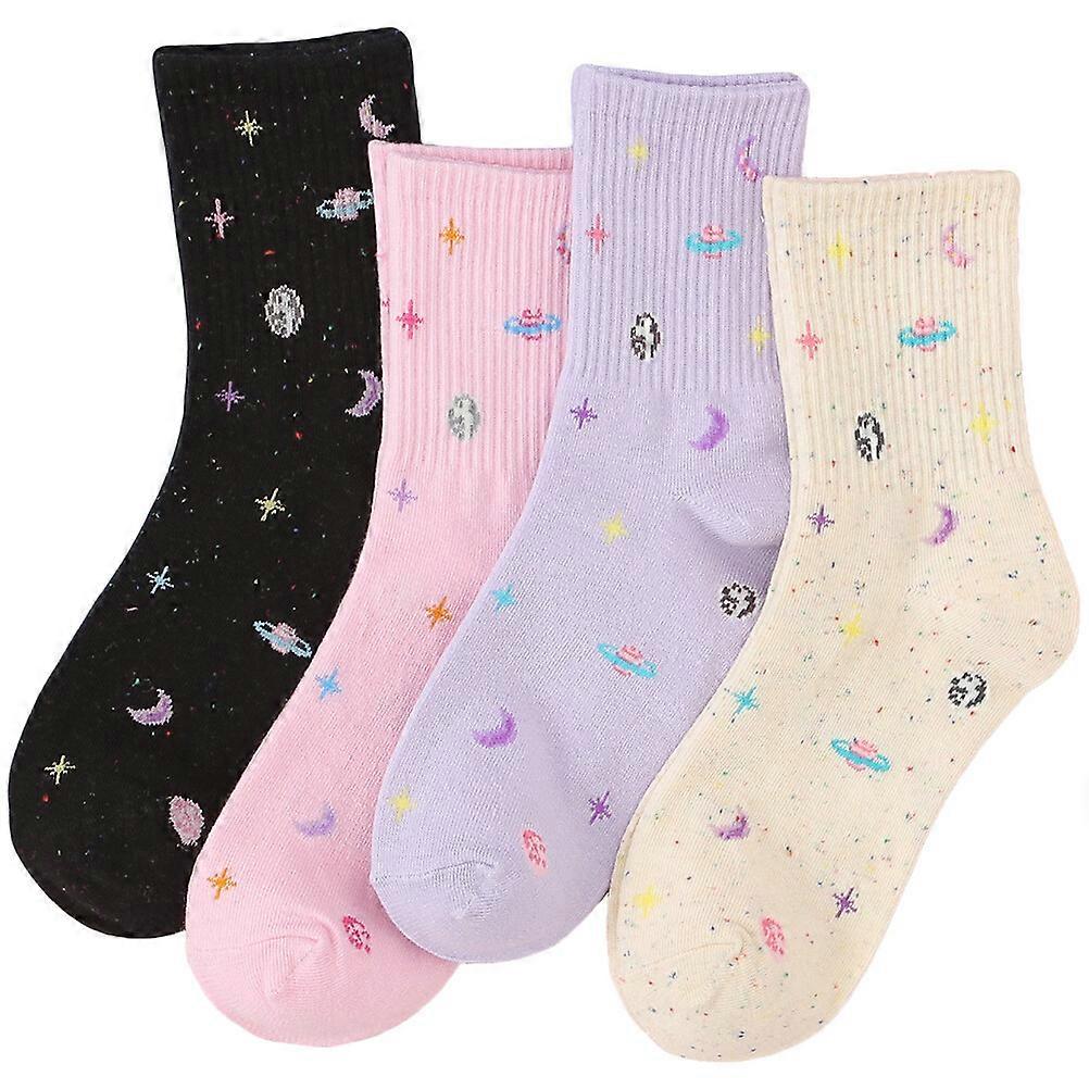 4 Pairs Universe Stars Pattern Socks Mid-tube Sock Cotton Stocking Women Socks
