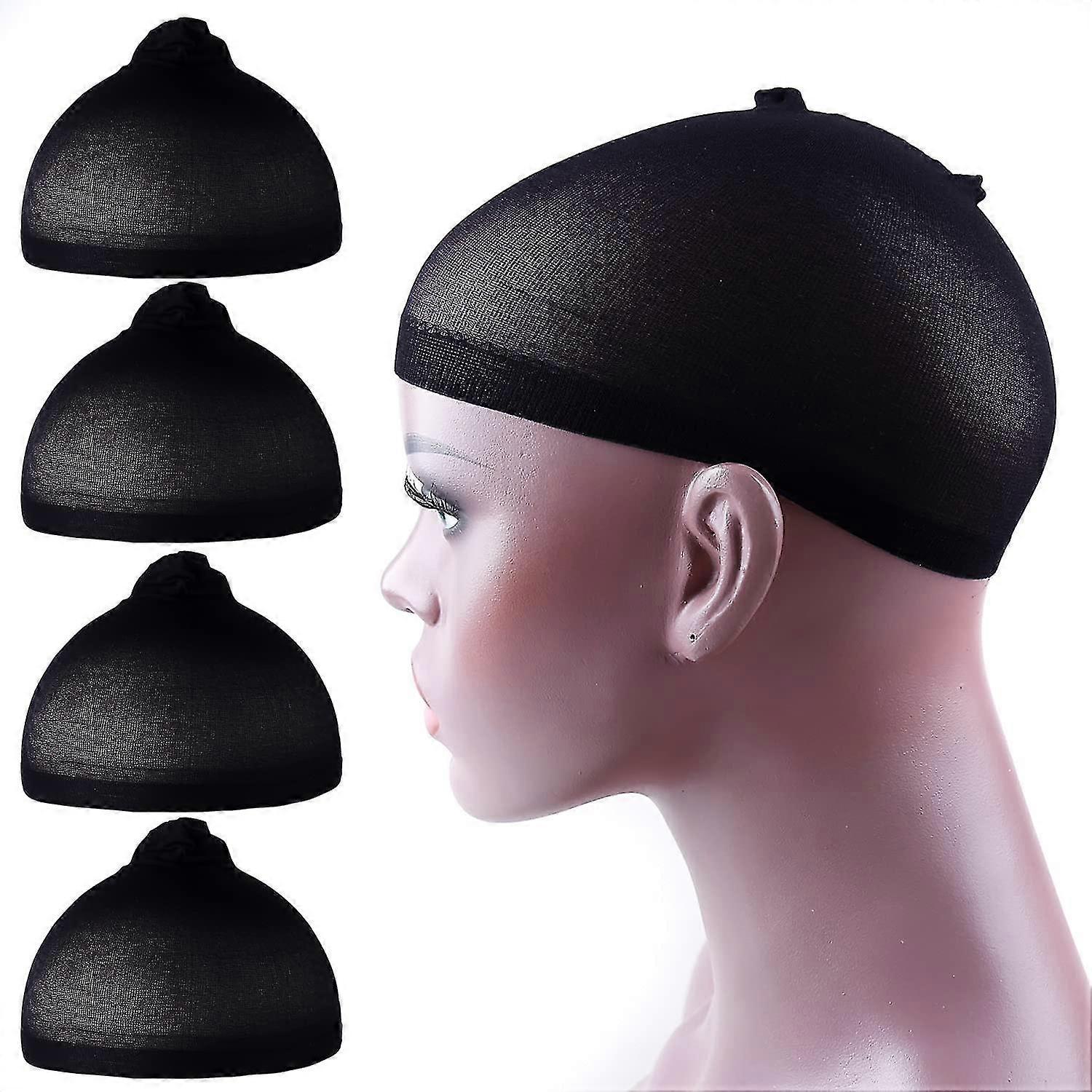 4 Black Stockings Wig Caps, Stretch Nylon Wig Caps