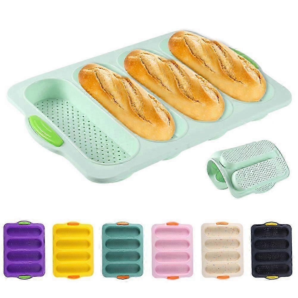 4-Cavity Silicone Baguette Mold, Non-Stick French Bread Baking Pan for Oven Kitchen