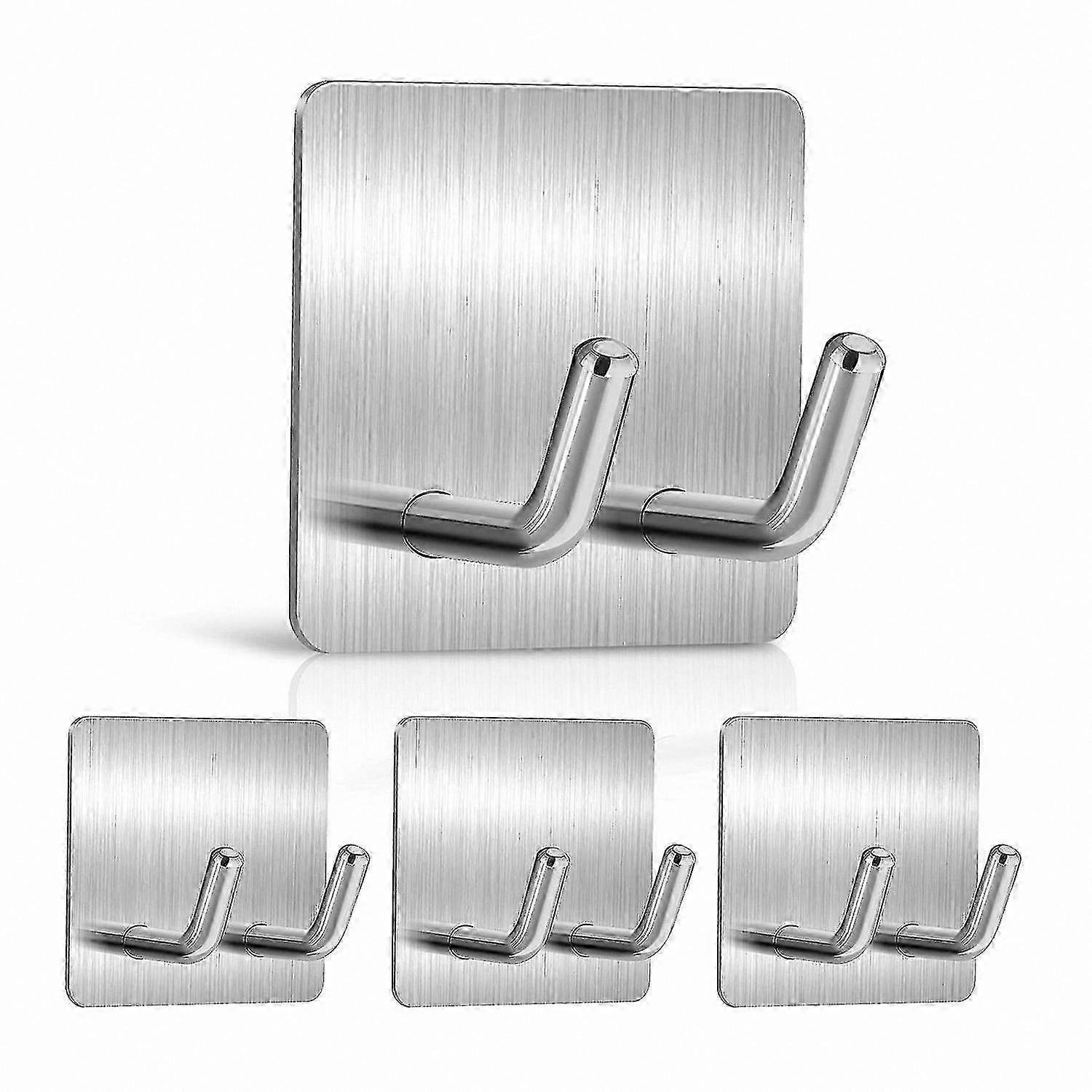4-Pack Adhesive Hooks, Stainless Steel Double Wall Hooks for Towels, Loofah Holders, Kitchen and Bathroom Utility Storage Solutions