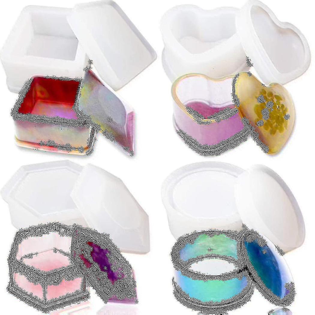 4 Pack Box Resin Molds Jewelry Box Molds Heart Shape /hexagon/round And Square Epoxy Molds Containe