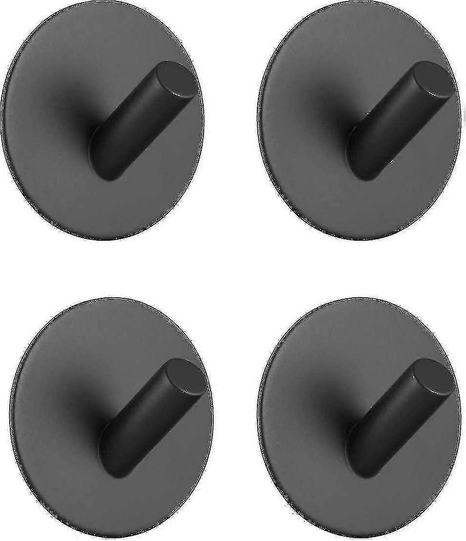 4 Self-adhesive Black Stainless Steel Hooks, No Need To Drill, Can Be Used To Hang Bathrobes And Towels, Suitable For Clothes-