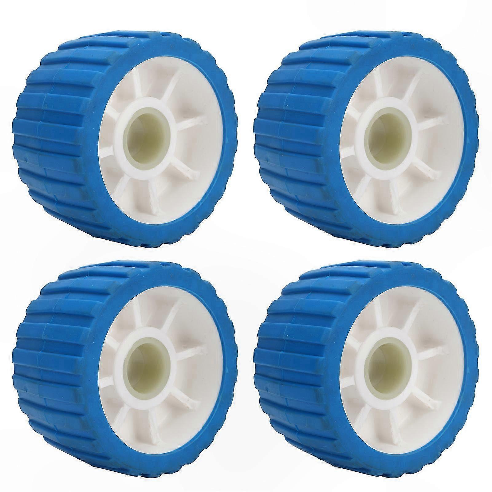 4-Pack High-Temperature Resistant Poly Ribbed Rollers for Boat Trailers, 125x73x30mm, Blue
