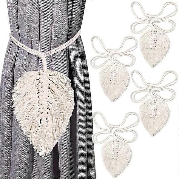 4-pack Boho Leaf Curtain Tiebacks - Cotton Macrame Curtain Holders in Beige