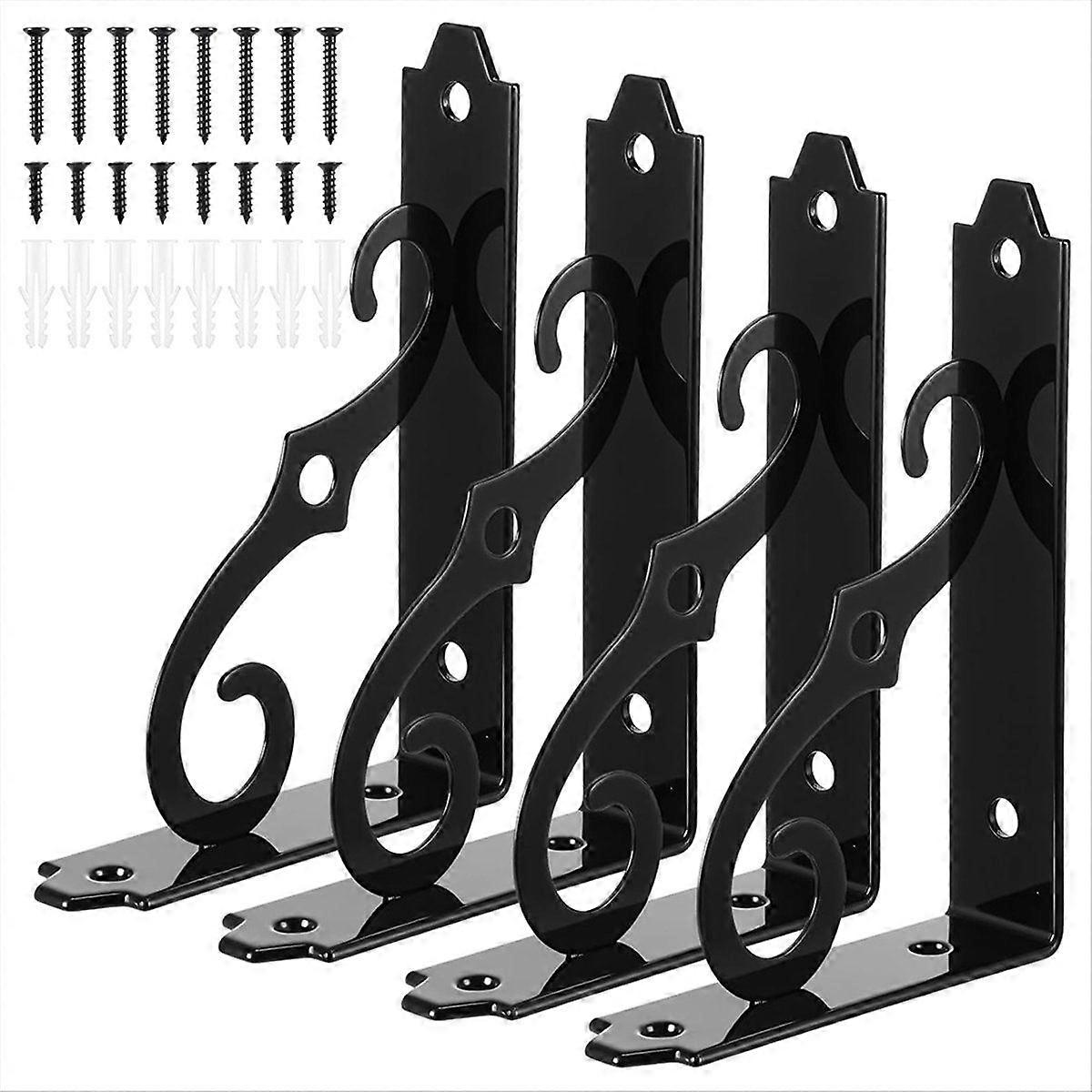 4 Pack Decorative Shelf Brackets,5 Inch Black Shelf Brackets with Screws,L Shape Heavy Duty Wall Mo