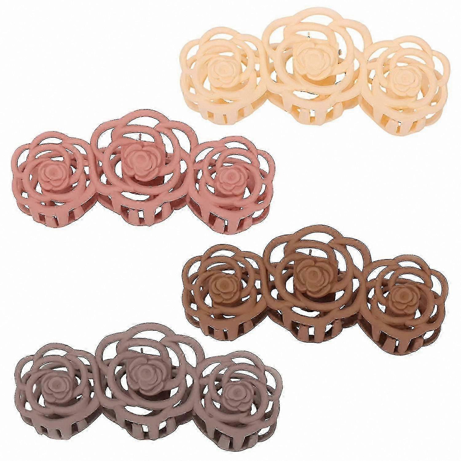 4-Pack Hair Claw Clips for Women, Rose Design, Non-Slip Matte Finish, Styling Accessories for Thin to Thick Hair, Assorted Colors