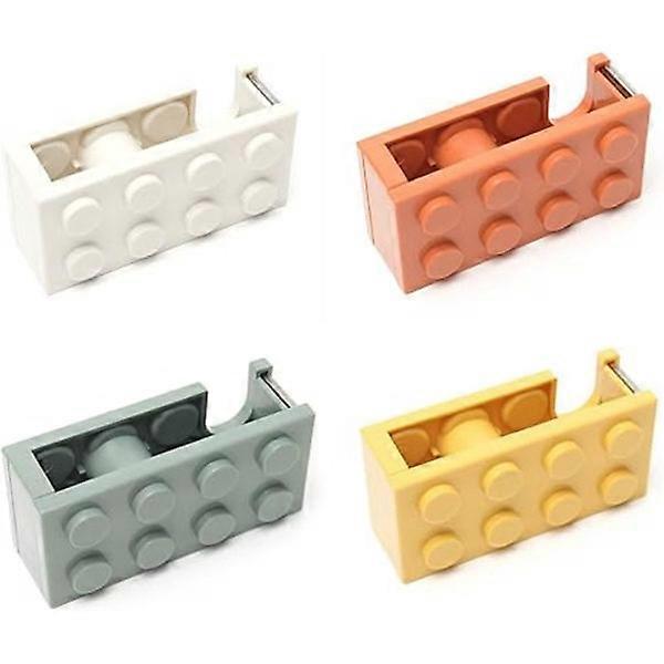 4-Pack Cute Desk Tape Dispensers Adorable 4-Color Tape Holders for Gift Wrapping Tape Cutters for Office, Home, School Dimensions: 5.2*4*10.7 cm Colors: White, Orange, Green, Yellow 【Cute Design】 Features a charming building block design. Comes in a 4-pack with assorted colors, perfect for home, office, and school use. 【One-Handed Operation】 Roll design allows for quick and easy tape loading. Tape stays put and won't easily detach. Pull tape horizontally and quickly pull down to use the blade slide for one-handed cutting. 【Suitable Size】 Dimensions: 4.2*4*1.6 inches (10.7*5.2*4 cm), fitting seamlessly into any home or office space. Accommodates tape widths up to 0.79 inches (2 cm). 【High-Quality Material】 Crafted from durable and robust PP and ABS plastic. Equipped with a stainless steel blade for effortless and swift tape cutting. Built to last, providing instant and neat tape cuts. 【Wide Application】 Versatile for various tape types including invisible tape, washi tape, craft tape, gift wrapping tape, decorative tape, double-sided tape, and medical tape.