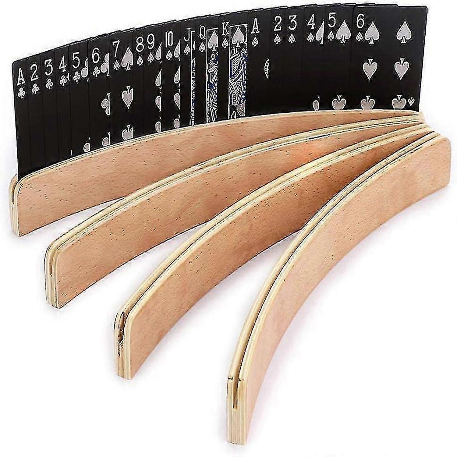 4 Pack 13" Curved Wooden Playing Card Holders for Kids, Adults, Elderly, Accessories for Bridge, Draw, Uno