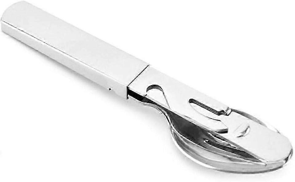 4 In 1 Portable Stainless Steel Camping Spoon, Fork, Knife And Can/Bottle Opener, Military Camping Utensils(Silver)(1Set) SZRH A-F