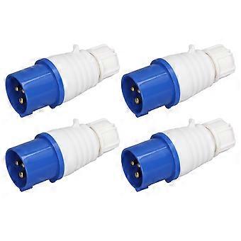 4Pcs Industrial Plug 3 Pin 16A IP44 Waterproof Replacement Sockets PP and Brass 220‑250V
