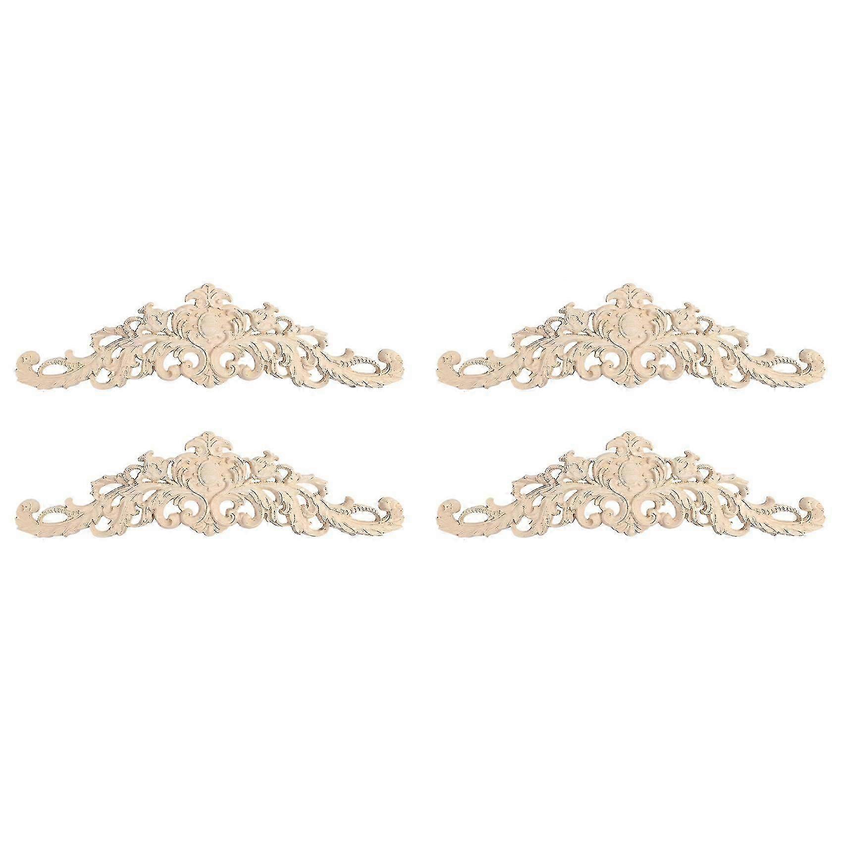 4pcs Wood Decorative Long Carved Onlay Applique Furniture Corners Ornament Home Door Bed Decor 30 X