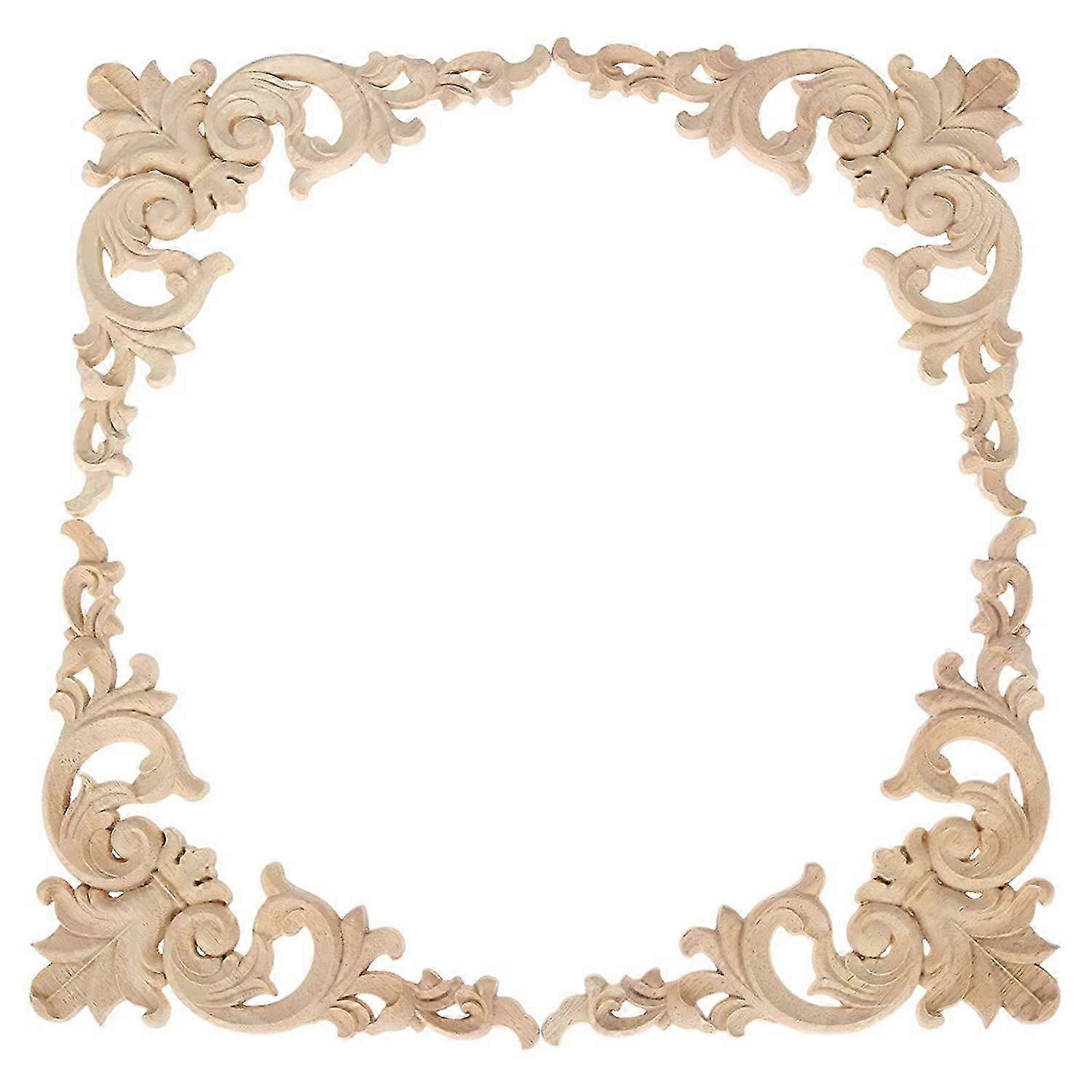 4Pcs Wood Carved Mouldings Corner Onlay Applique Furniture Home Decor