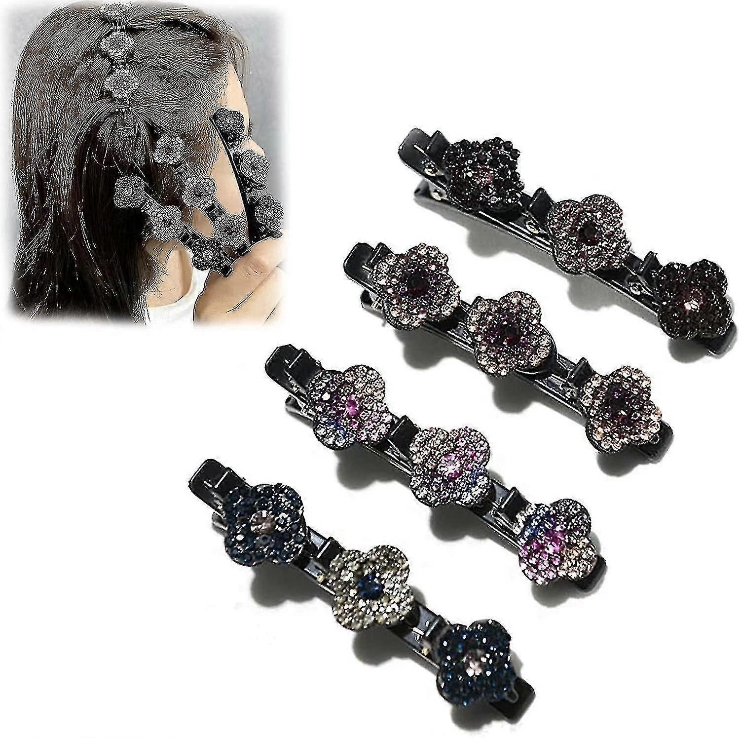 4pcs Satin Fabric Hair Bands, Three Flower Side Hair Clip, Hair Sectioning Clips, Sparkling Rhinestone Hair Clip